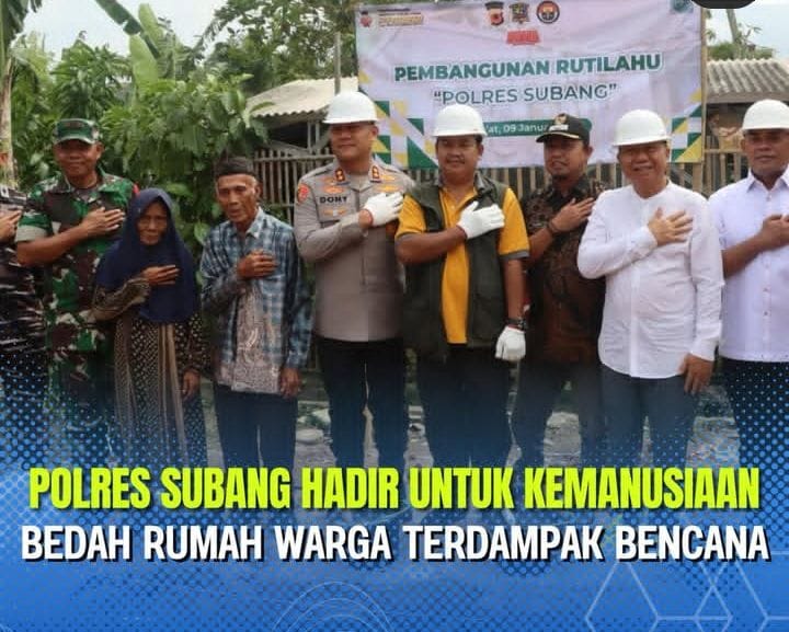 Newsline.id – Subang, Jawa Barat,- Kepolisian Resor (Polres) Subang kembali menunjukkan komitmennya dalam menghadirkan kepedulian sosial bagi masyarakat. Dipimpin langsung Kapolres Subang, AKBP Dony Eko Wicaksono, SH., S.I.K., M.H., Ph.D., jajaran Polres Subang melaksanakan kegiatan bedah rumah tidak layak huni (Rutilahu) milik Ibu Een (77), warga Dusun Kerta Mukti, Desa Blanakan, Kecamatan Blanakan, Kabupaten Subang, pada Jumat (9/1/2026).